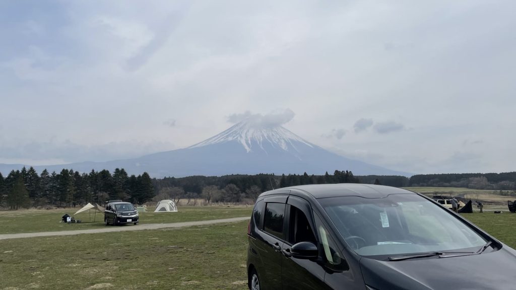ふもとっぱらキャンプ場を利用している人が結構いるようで、車のフロントにふもとっぱらの札をつけている車が結構ありました。