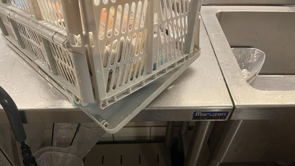 洗い物をしに草原中央トイレの洗い場まで行きましたが、何往復もしたくないので籠に洗い物を詰め込んだら籠が壊れました・・・ 😥