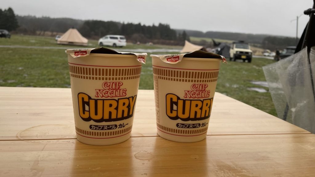 テントを片付けた後に金山テラスに行くと、ラーメンが販売していたので、体を温めるうえでも最高でした。