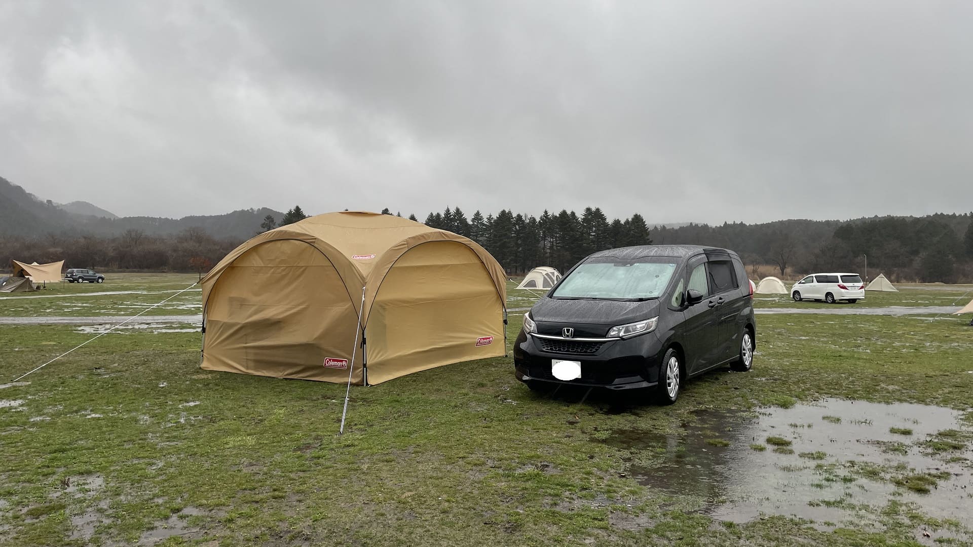 キャンプを張った場所自体ちょっと高いところにありましたが、水はけが悪いのか車のすぐ近くでも大きい水たまりも。