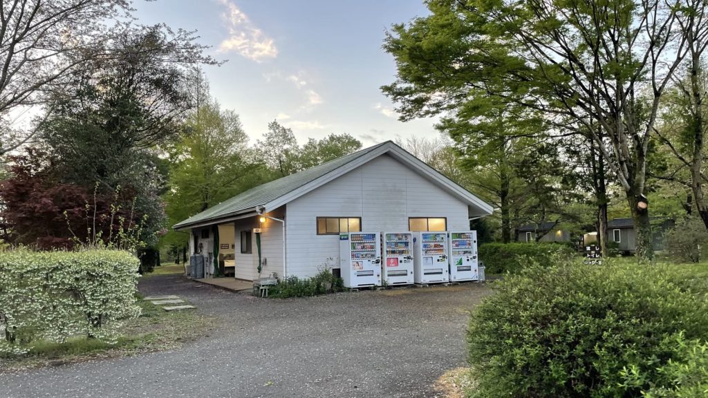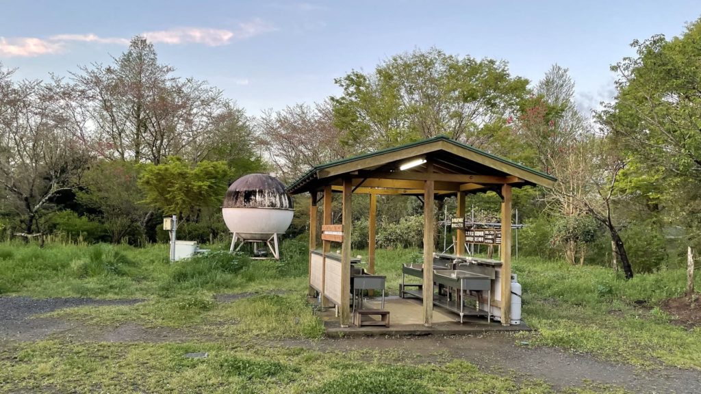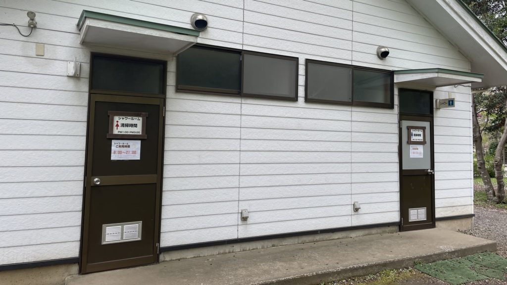 キャンプ場の中央にトイレや洗い場だけでなく、シャワー室もある炊事棟があります。