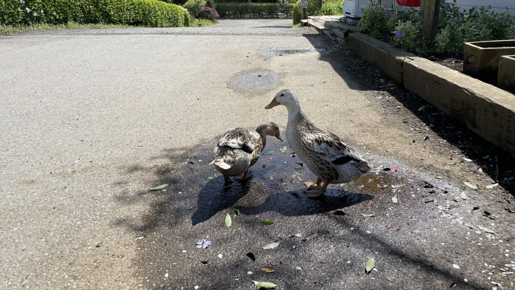 人に慣れたかわいらしいカモさんがいます。